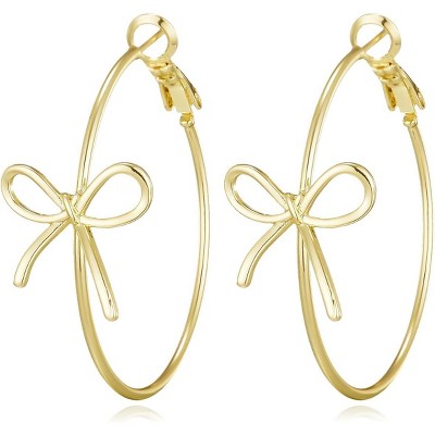 SmallRig Gold Bow Dangle Hoop Earrings for Women, Sparkly CZ Rhinestone Ribbon Huggie Design