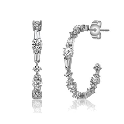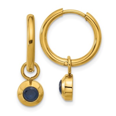 Bella Silver Sterling Silver Round CZ Charm Huggie Hoop Earrings - Gold Plated - Gold
