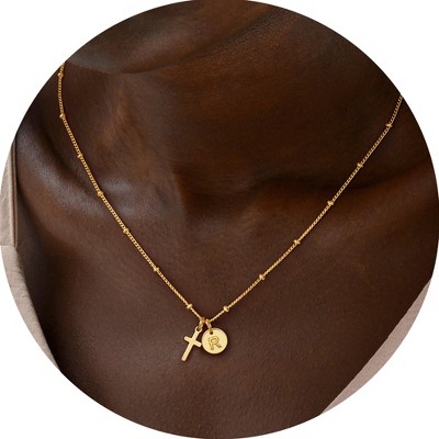 Turandoss Dainty Gold Cross Initial Necklace for Women Girls - Disc Letter Pendant Necklace Trendy, Birthday Gifts for Women, Jewelry for Her, 16+2.5
