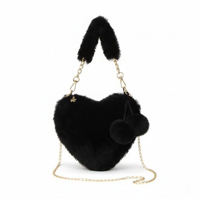 Alilang Women's Plush Heart-Shaped Crossbody Handbag with Chain Strap