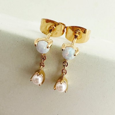 Cosmic Opal Chain Studs in Gold, Rose Gold, Silver - Honeycat