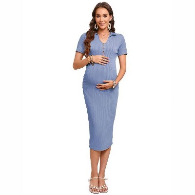 Clearlove Women's Maternity Dress Casual Halter Neck Midi Rib Knit Pregnancy Dresses