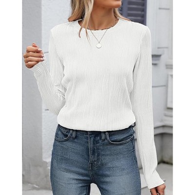 Women's Textured Knit Top Long Sleeve Crewneck Ribbed Shirt Slim Fit Blouse