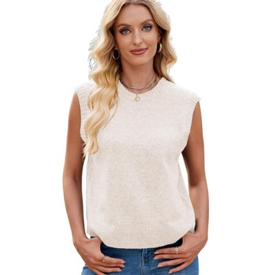 Clearlove Women Summer Sweater Vest Knit Crop Cardigan Sleeveless Turtleneck Bow Tie Back Knitted Cami Shirts Ribbed Crew Neck Tank Tops