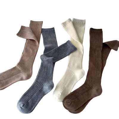 Anna-Kaci Women's 4-Pair Ribbed Crew Socks Set with Classic Knit Design Soft Stretch Fabric and Everyday Comfort Fit - Multicolors