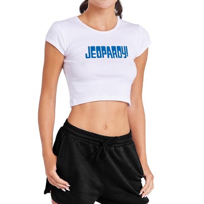 Women's Jeopardy Blue Logo Cap Sleeve Baby Rib Crop Top
