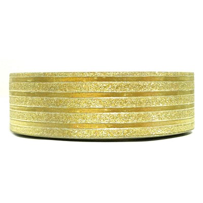 45' Christmas Fabric Ribbon Sheer with Gold Glitter Stripes - Wondershop™