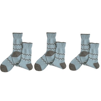 Anna-Kaci Women's Ribbed Knit Crew Socks 3 Pair Set with Zigzag Pattern Detail Soft Stretch Fabric Giftable Everyday Socks - Blue