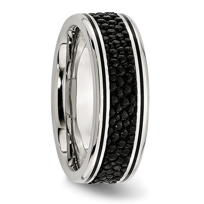 Chisel Stainless Steel Polished Black IP-plated Diamond-Cut 8mm Band Ring