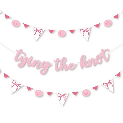 Big Dot of Happiness Tying the Knot Bridal Banner, Pink Bow Coquette Bachelorette Letter Banner Decor - 36 Banner Cutouts and Tying The Knot Letters