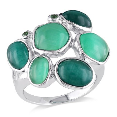 EVERLY JEWELRY | Sterling Silver Simulated Dark and Emerald Green Cat Eye and Cubic Zirconia Bezel Set Mosaic Cocktail Ring