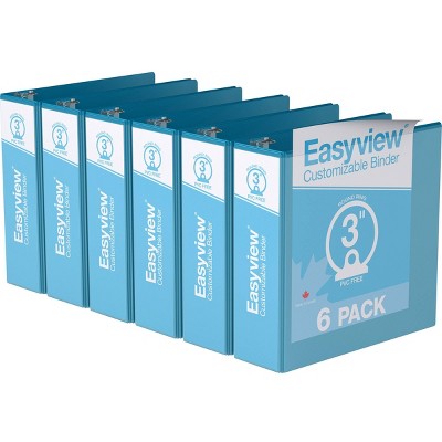 3" Premium Round Ring Binder 6pk Customizable View Turquoise Blue - Easyview: Hard Cover, 600 Sheet Capacity, 2 Pockets