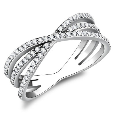 Slickblue Women's Clear CZ Ring, Stainless Steel, Polished No Plating, Cross Design Jewelry, Size 5-10