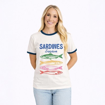 Sicily Fish Market Puff Print - Women's Ringer Graphic T-Shirt