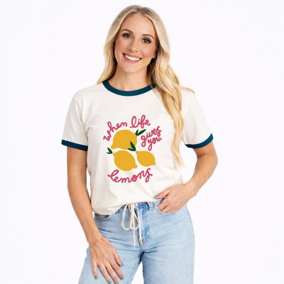 Lemon Faux Patchwork - Women's Ringer Graphic T-Shirt