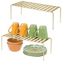 Cabinet Organizer Shelf, Set of 2 Kitchen Counter Shelves, Kitchen Storage, Spice Rack, Stackable, Expandable, Metal and Engineered Wood
