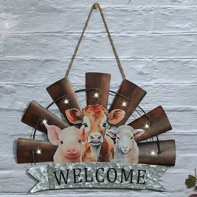 The Lakeside Collection Welcome Windmill Sign With Farm Animals And LED Lights Hanging Decor -
