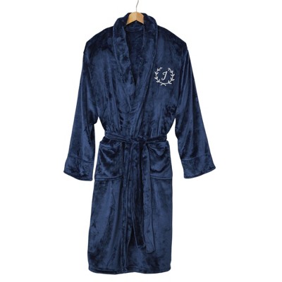 Personalization Mall Floral Wreath Embroidered Luxury Fleece Robes Navy