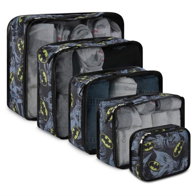 DC Comics Batman Packing Cube Set - Batman, Robin, Superman, Joker - 5 Piece Packing Cube Travel Essential - Luggage Organizer Set