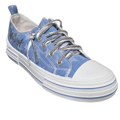 Very G Womens Aman USA Lace Up Platform Slip On Canvas Sneaker, Light Denim