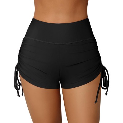 Charmo Women's Swim Shorts High Waisted Adjustable Side Tie Swimsuit Shorts with Ruffled Back Pocket Swim Bottom Board Shorts