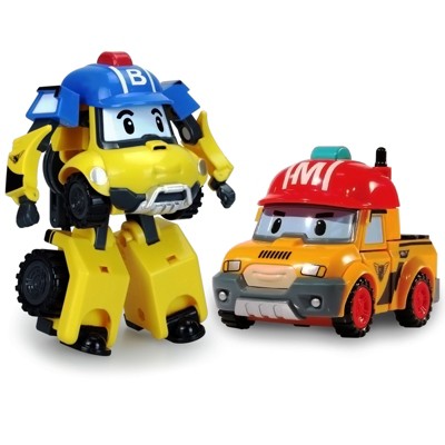 Robocar Poli 2PCS 4" Transforming Robots (MARK & BUCKY) - Emergency Rescue Vehicle Action Figures | Kids Educational Pretend Play Toy