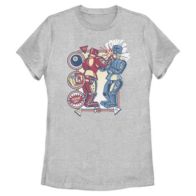 Womens Mattel Blue Bomber and Red Rocker Robots Game On T Shirt