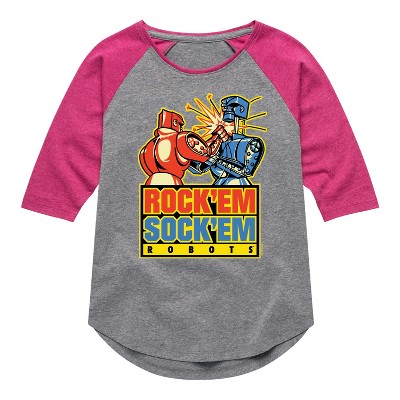 Girls' - Rock 'Em Sock 'Em Robots - Red Rocker, Blue Bomber Shirt Tail Raglan Graphic T-shirt