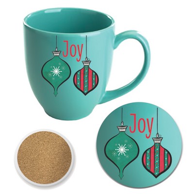 Courtside Market Joyful Christmas Ornaments II 16 oz Café Mug & Coaster Set