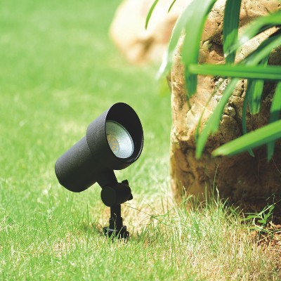Fusion Wired Low-Voltage LED Spotlight, Metal Outdoor Patio Lawn Landscape Ground Stake Light with Adjustable Head, 1000 Lumens, Black