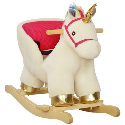 Qaba Kids Rocking Horse, Ride on Unicorn with Realistic Sounds, Safety Belt & Wooden Base, Plush Rocking Horse for Toddlers 18-36 Months, Cream White
