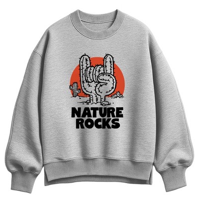 Women's - Instant Message - Nature Rocks Oversized Fleece Crew Sweatshirt