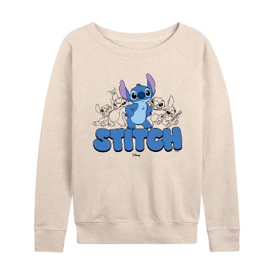 Women's Disney Stitch Group Lightweight French Terry Wide Neck Long Sleeve Graphic Shirt - Birch - 1X