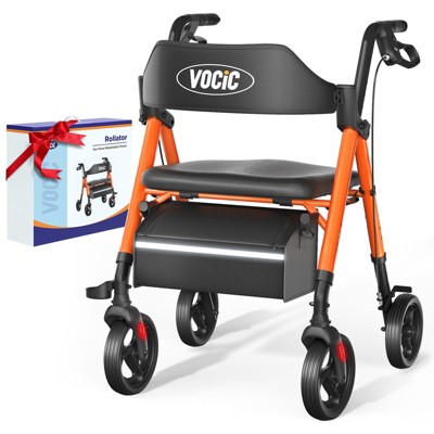 Walkers for Seniors,Foldable Walker with Seat,Aluminum Supports 330lb,8" Wheels-Orange