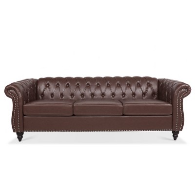 - rolled arm leather sofa