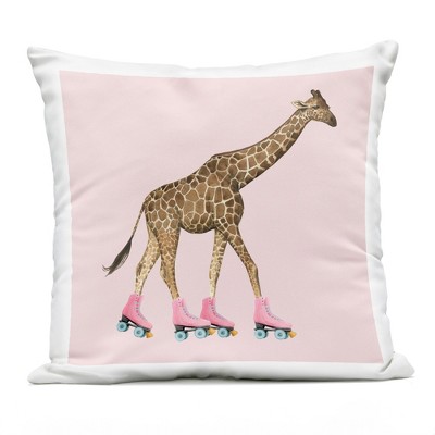 Stupell Industries Funny Giraffe Wearing Roller Skates Over Pink Indoor Decorative Throw Pillow, 18 x 18