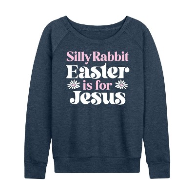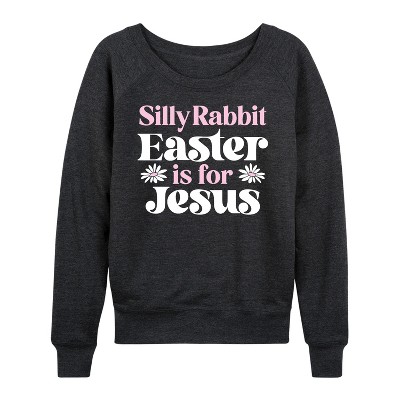 Women's - Instant Message - Silly Rabbit Easter Is For Jesus Lightweight French Terry Wide Neck Long Sleeve Graphic Shirt