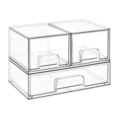 Itopfox Stackable Acrylic Storage Drawers Set of 3 Clear Plastic Organizer Bins 12.1 Inch Wide 2pcs 4.4 Inch Tall for Bathroom Kitchen