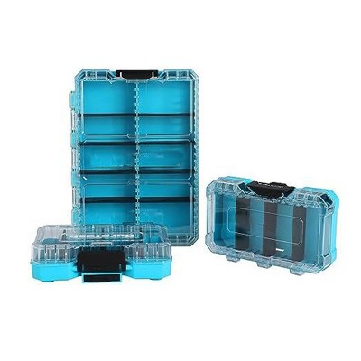 Aoibox 3 Piece Small Parts Organizer Set 14 Compartments Removable Dividers Stackable Portable Tool Box with Clear Lid for Hardware Storage