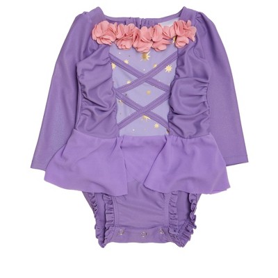 RuffleButts Girls UPF50+ Princess Dress-Up Long Sleeve One Piece Swimsuit