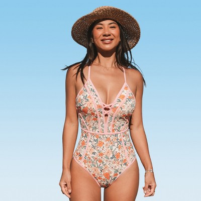 Women's Elegant Floral One-Piece Swimsuit with Criss-Cross Front Detail - Cupshe