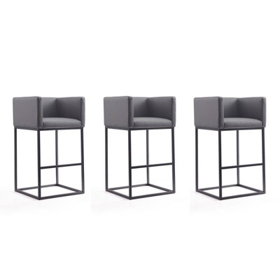 Buylateral Set of 3 Delta Adjustable Height Swivel Barstool Black/Gray: Swivel, Metal Frame, Microfiber