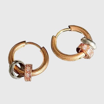 18K Gold Plated Statement Door Knockers Stud Earrings for Women | Interlock Ring Dangle Earrings