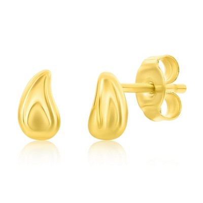 Bella Silver Sterling Silver, Polished Curved Puffed Teardrop Studs - Gold Plated - Gold