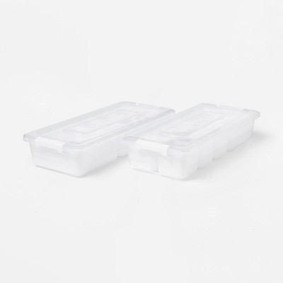 Click in Place 3qt Clear Shallow Slim Plastic Storage Bin with White Latch for Home and Office Organization - Brightroom™