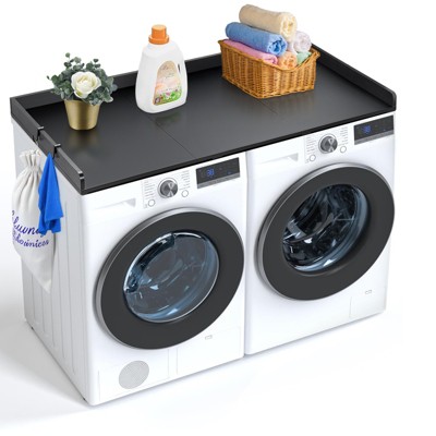 VEVOR Washer Dryer Countertop with 3 Splicing Panels,54"x27"Wooden Washer and Dryer Countertop with Non-Slip Pads,Water-Resistant Laundry Topper,Black