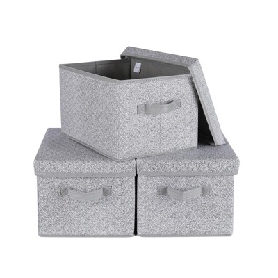 Aoibox Collapsible File Storage Organizer Box with Lid Lattice Linen Hanging Filing Bin for Letter Legal Folder Home Office