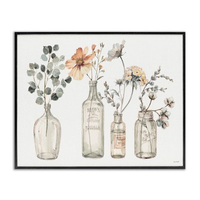 Stupell Industries Antique Floral Bouquets in Jars Framed Giclee Art, Black, 20" x 16"