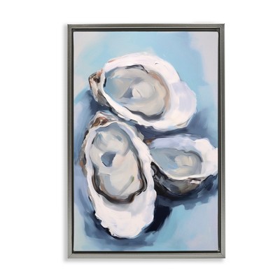 Stupell Industries Three Oyster Seashells Floating Frame Canvas Art
