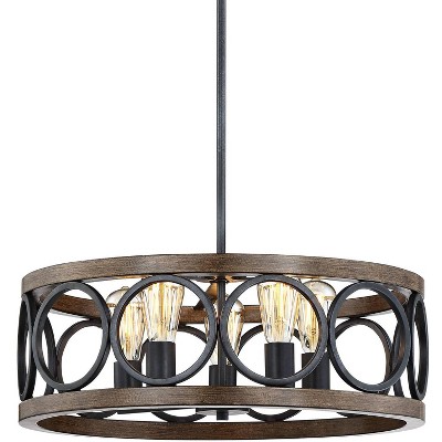 Possini Euro Design Jaime 23 3/4" Modern Pendant Chandelier Ceiling Light Fixture Dining Room Over Table Kitchen Island Drum Matte Black and White